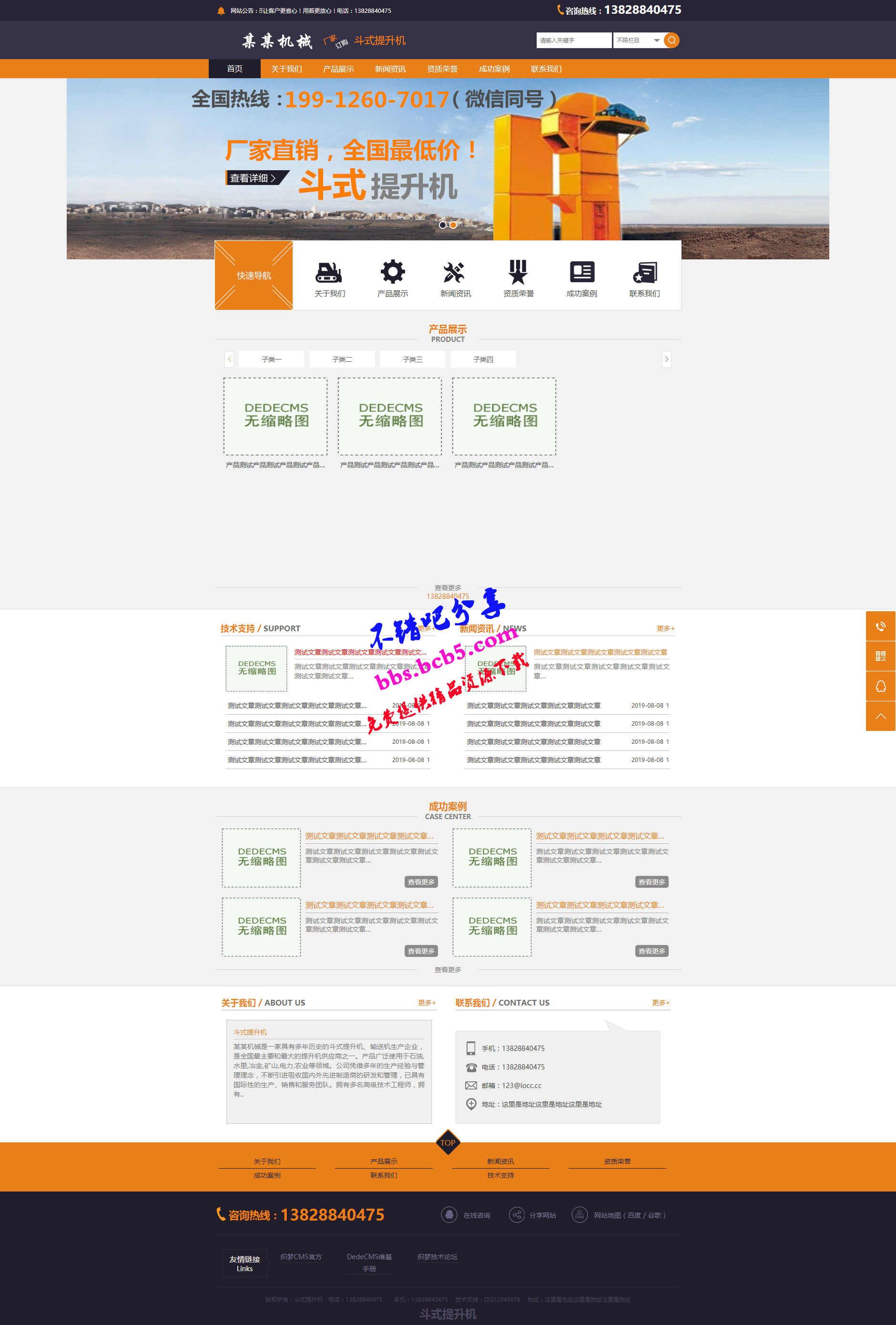 【测试无误】织梦黄色机械设备织梦模板(整站带数据) ★模板安装方法★1、下载本模板整站压缩包。2、解压code文件夹里面的所有文件和文件夹上传到你的网站根目录3、安装dede系统。(如果您已经安装,请跳过本步.)直接运行:http://您的域名/install4、登陆后台并还原数据库:1)进入dede后台,找到“系统”-“数据库备份/还原”2)在屏幕右上角点击“数据还原”3)点击屏幕下方的'开始还原'按钮6、确定网站风格(无论是否修改,都点击一下确定):1)点击“系统”---系统基本参数2)将“站点根网址”改为您的网址,如[url]http://www.xxx.com/(本地安装请保持[url]http://127.0.0.1。)3)点击“确定”按钮5、更新整站缓存:点击“生成”-“更新系统缓存”6、更新网站:点击“生成”-“一键更新网站”-“更新所有”-“开始更新”点击“生成”-“更新主页html” 后台地址: /dede账号:admin 密码:admin至此,模板安装结束lctz