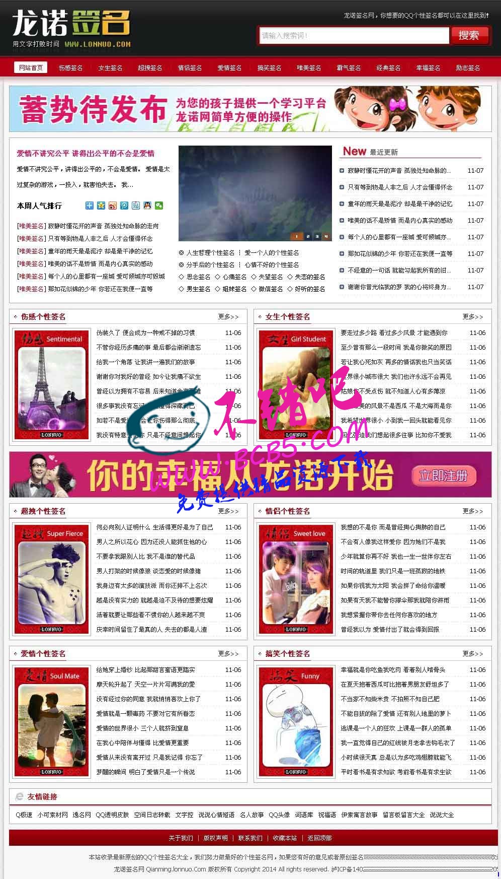 耘艺源码网 » 某QQ签名网织梦模版,可做资讯类的通用织梦模板
