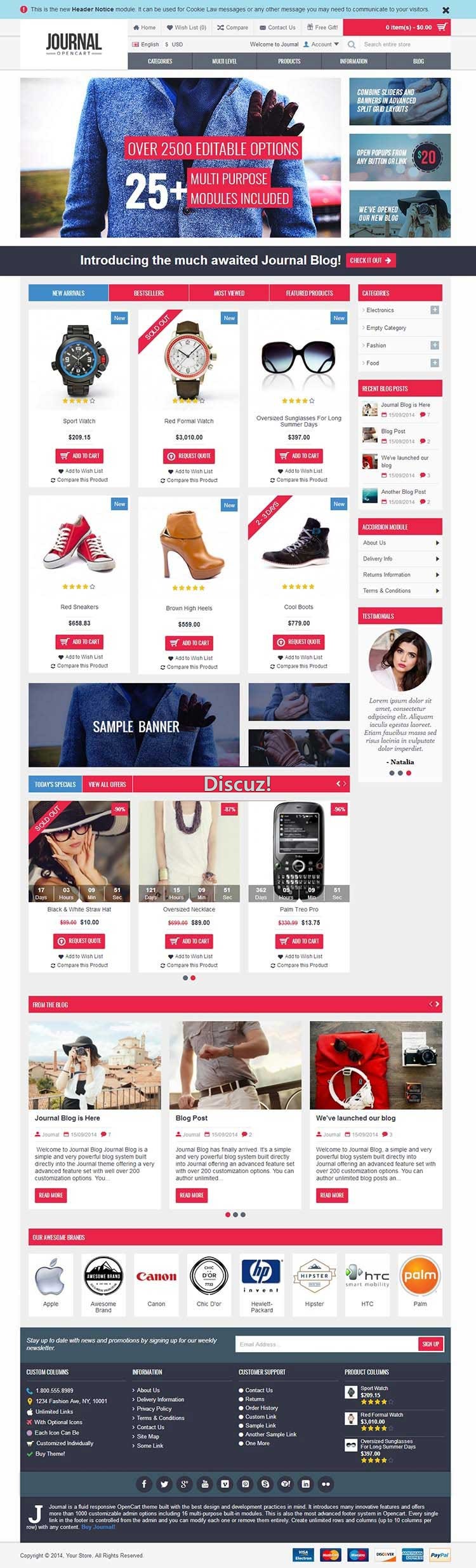 OpenCart服装鞋子电脑手机端自适应模板,Journal是最好的OpenCart主题,具有一流的功能和超过2000个可编辑选项,可以全面控制您的商店。 杂志可以像你想要的那样简单,干净或复杂多彩。