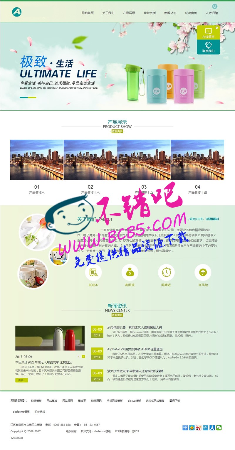 小饰品生产自销型企业网站源码|生活用品卡通水杯类网站织梦模板(带手机版数据同步)该模板是非常容易存活的,这样的网站很容易吸引访客点击,提升ip流量和pv是非常有利的,随便挂点联盟广告都能养活网站。本套织梦模板采用现在非常流行的全屏自适应布局设计,且栏目列表以简洁,非常时尚大气。页面根据分辨率大小而自动排版,很大程度上改善了页面宽度兼容问题,适应大部分显示器分辨率尺寸哦。模板整体以多种颜色为主色调,适合做各种类型的网站。同一个后台管理三网合一简单方便,体验极佳1、该模板代码干净整洁;2、效果相当的炫酷,相当简洁大气高端,模板简单,全部已数据调用,只需后台修改栏目名称即可 3、适用于生活用品、水杯小饰品生产型企业;4、网站手工DIV+css,代码精简,首页排版整洁大方、布局合理、利于SEO、图文并茂、静态HTML;5、首页和全局重新做了全面优化,方便大家无缝使用;