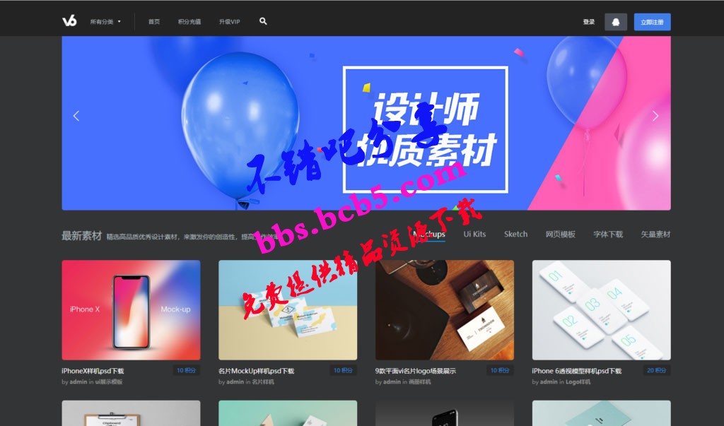 织梦dedecms黑色精美仿v6design设计素材图片资源下载网站模板