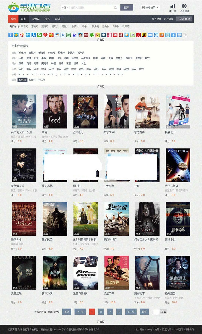苹果cms8x仿4567tv模板高清影视 完整无错电影模板