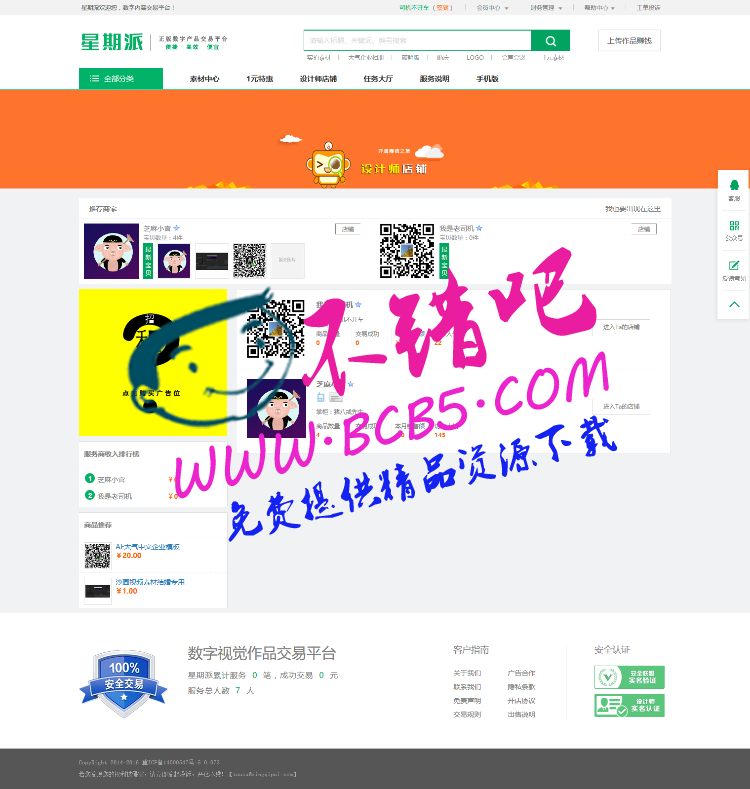 最新2017年友价T5精仿我图网系统解密开源版源码带手机版,星期派源码交易系统绿白风格模板