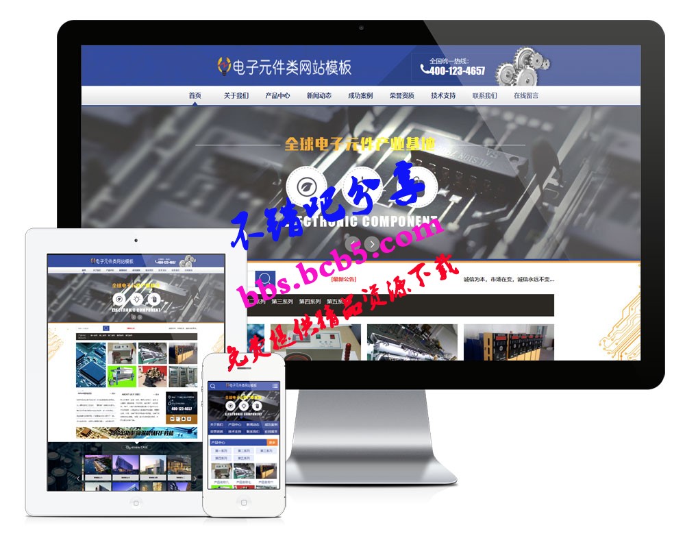 (自适应移动端)响应式HTML5电子元件网站源码 电子产品pbootcms网站模板
