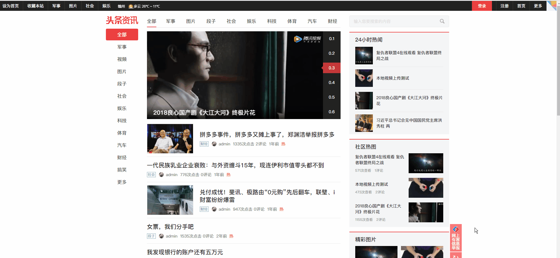 十八腔头条地方门户 gbk编码版(仿化龙巷2018+今日头条)