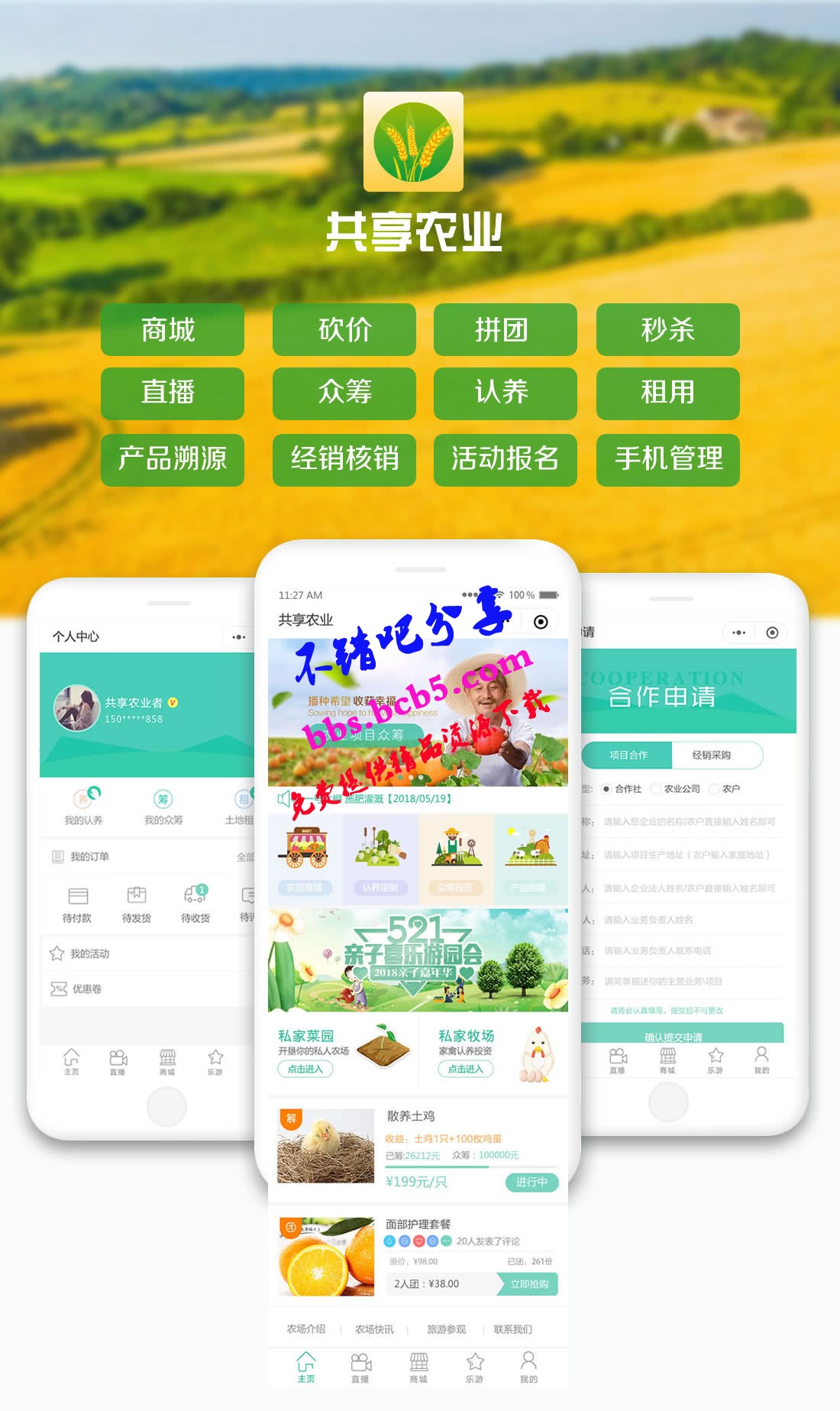 互联网加共享农业V1.4.1安装更新一体包+小程序前端