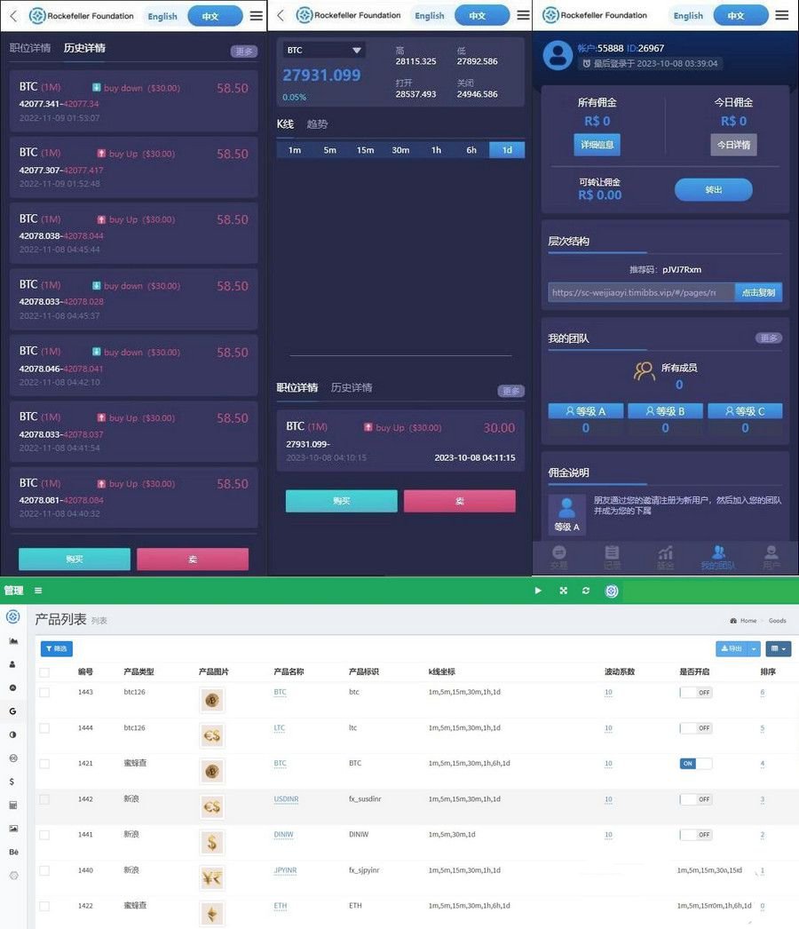 中英文海外Rockefeller微交易系统源码,BTC虚拟币微盘平台源码,带控杀