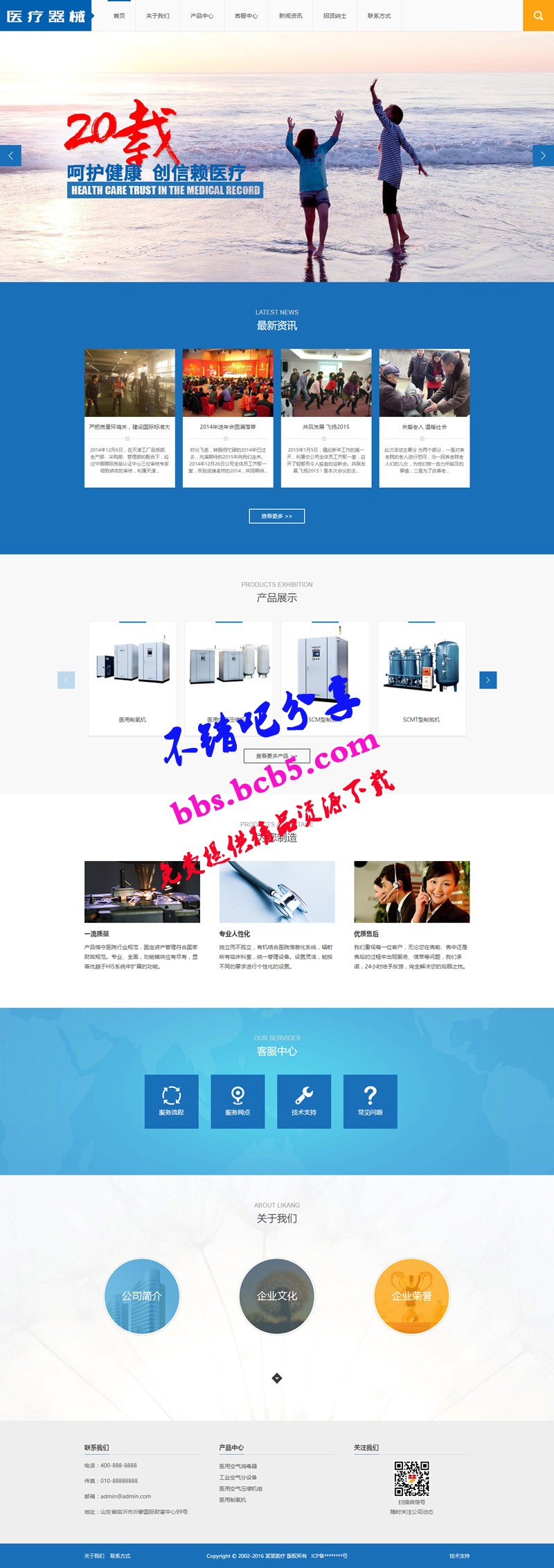 PHP蓝色大气医疗器械设备企业网站源码 带手机版
