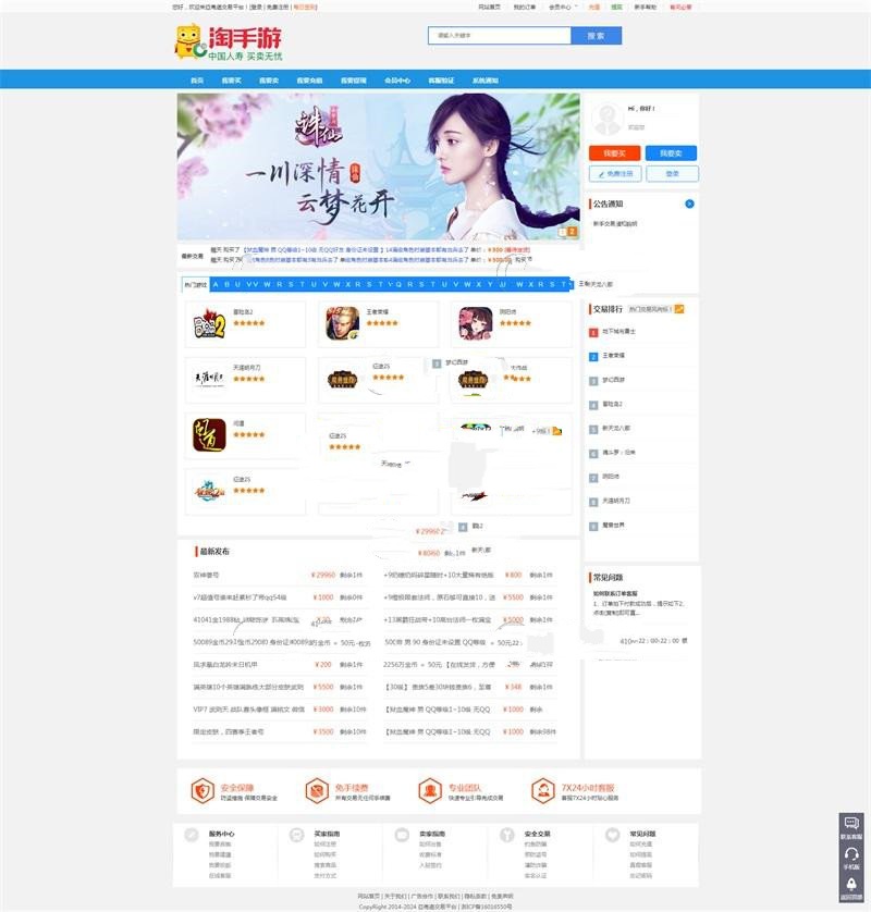 友价二开自适应手游交易网源码 在线游戏交易电脑版+手机版 带支付接口+会员系统