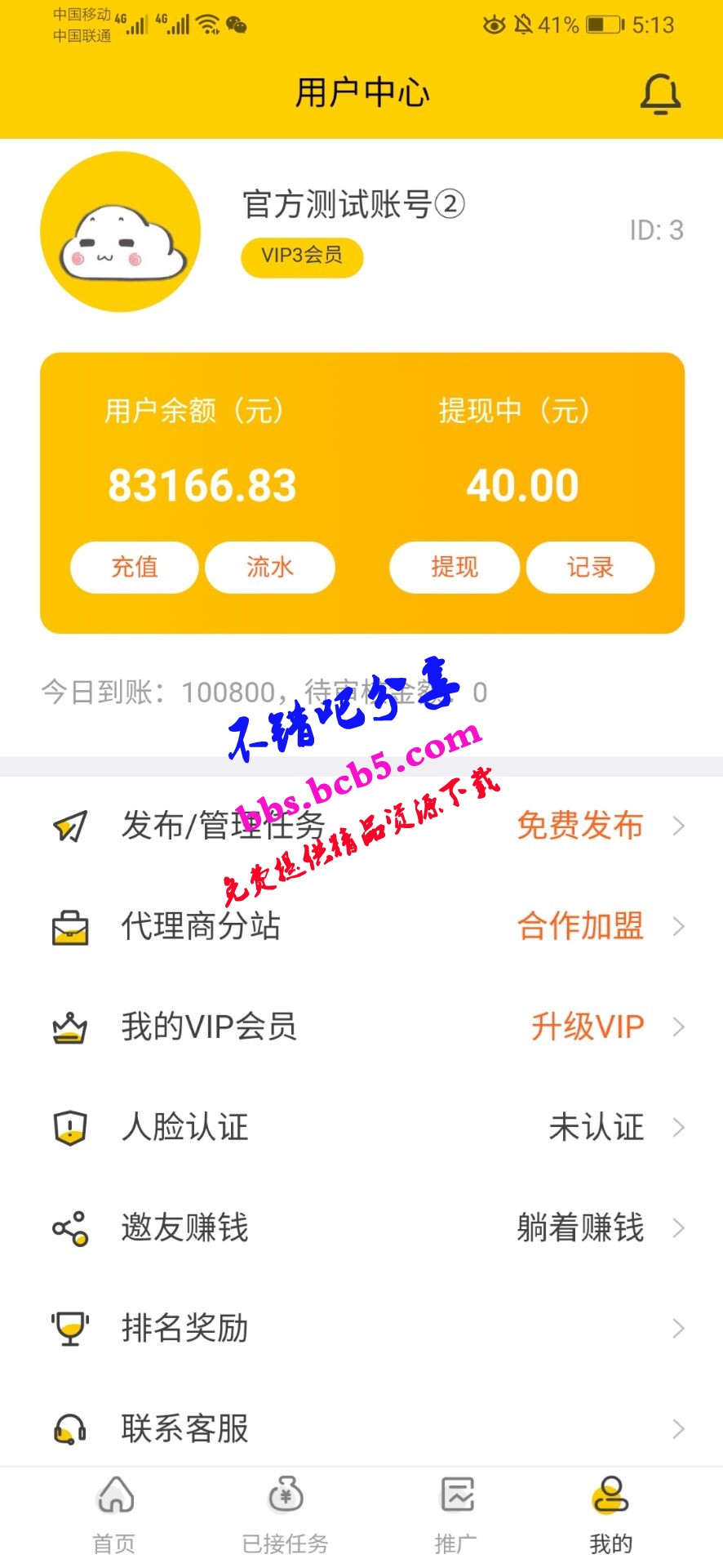 2020新版仿趣闲赚悬赏猫任务兼职网站源码新建站点,数据库选择MySQL,然后点击提交上传程序,上传到新建站点时的根目录下(默认为/www/wwwroot/域名/路径下)将后端源码上传至网站根目录下,讲网站运行目录指向:public 设置权限:网站根目录下输 入命令:chmod -R 777 *上传数据库,配置后台地址 域名+admin.php 账号是admin 密码是 qq1737571164今天给大家录制一期 精仿悬赏猫悬赏任务发布系统源码 搭建 先来看一下不错吧~ 好了我们进入主题 先来说一下 配置环境 宝塔面板 自己可以用ssl 链接安装宝塔面板 这个不需要多解释环境是 Linux 系统 php版本5.6 sql5.5 其他的不需要什么 虚拟机是不可以的 ! 大家不要用虚拟机 用服务器即可 1. 上传源码 数据库 、 导入数据库 解压 源码 修改数据库配置 即可 搭建起来基本没什么难度 小白基本都可以完成大家可以看以下安装步骤 数据库我这边也导入了 由于时间关系 不然每一期的教程时间都很长 伪静态 TP 要设置 运行目录设置 public 给他777权限 好了 大概就是这些 你们自己看 网站安装 源码编码格式: UTF-8 1.新建站点,域名填写[url]www.xxx.com,数据库选择MySQL,然后点击提交 2.上传程序,上传到新建站点时的根目录下(默认为/www/wwwroot/域名/路径下) 将后端源码上传至网站根目录下,讲网站运行目录指向:public 3.设置权限:网站根目录下输 入命令:chmod -R 777 * 4.上传数据库,在宝塔面板中进入phpMyAdmin,选择对应的数据库,点击导入即可 5./data/conf 目录,修改database,将数据库的(数据库名,用户名,密码)和域名填好,保存-----------------------------------------------------------------------------------------------------我们看下成品 后台没什么 一个TP的框架 就是管理任务 发布公告 管理用户等等 这些 这是H5前端 在这里重点跟大家说一下 这个有三个端 H5网页端 安卓端 苹果端 三个端 前端的语言是 VUE框架 也就是需要HB打包 打包我就不掩饰了 测试了几次打包 超限制了 我也很悲催 基本就是这些了 我们可以参考一下 悬赏猫程序 我这边找了两个例子 基本都是一样的 这个呢 H5和 APP端 都是通用的 数据是互通的有的人 就喜欢用 H5 有的人就喜欢APP 就是这些吧 由于 APP 无法叫我打包了 我就给大家看一下 我手机截图下来的 步骤吧 大概就是这些 APP包我就不放出来了 现在不叫打包 等打包出来 在弄出来就好了 H5也是一样的