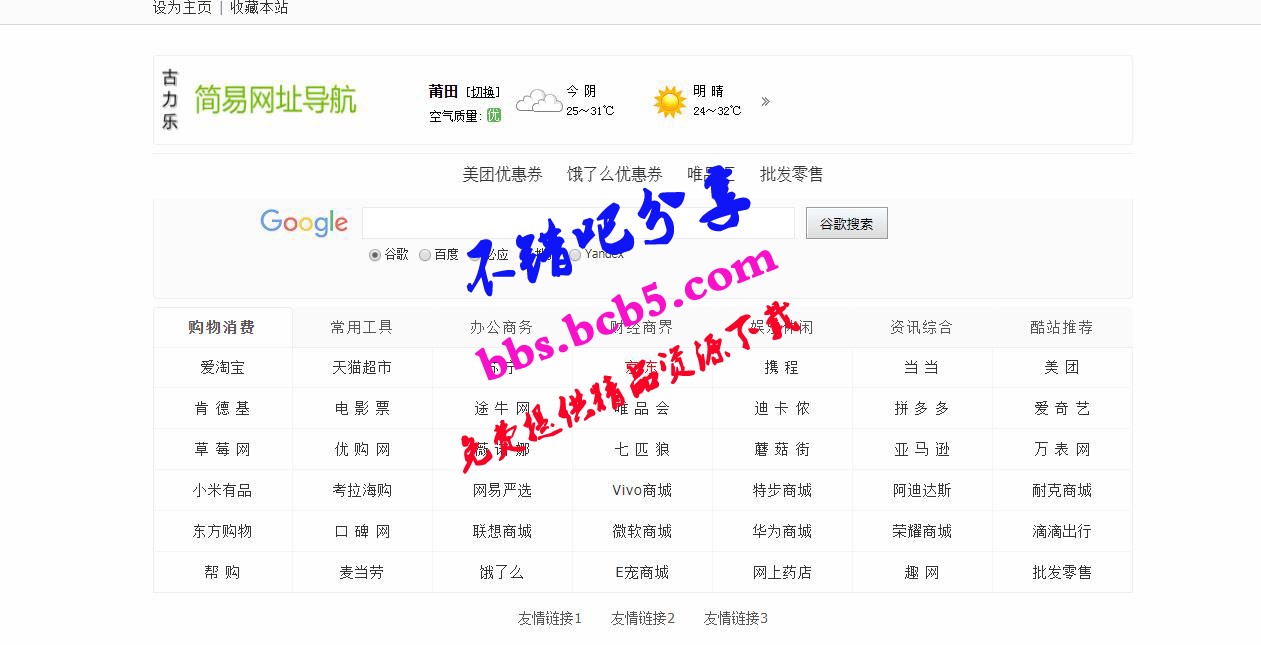 耘艺源码网 » 古力乐简易网址导航综合搜索引擎站html源码