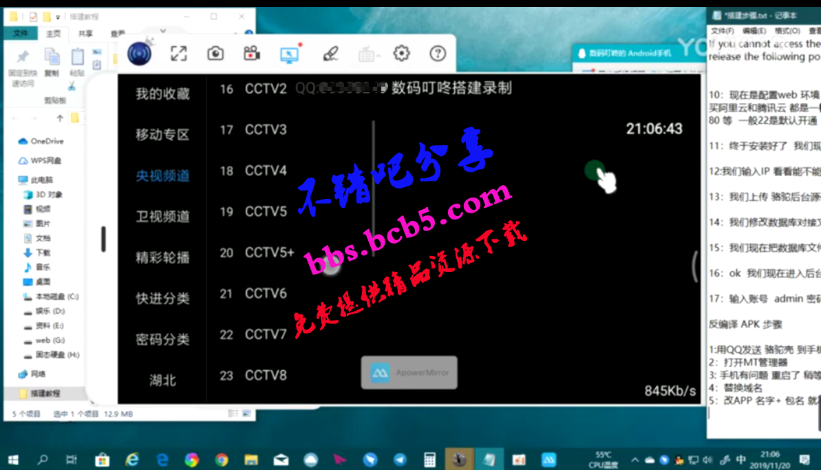 骆驼IPTV是一套功能完善的IPTV系统,带用户管理和自定义直播源等强大功能,使用本源码可零基础搭建一套自己的IPTV直播软件。如果改了包名需要找到 aes.php 文件打开并修改$sig=12315;$appname=’数码IPTV教学’; 这里改成APK 一样的名字$packagename=’com.sm.tv’; 这里改成APK 一样的包名$key=md5($sig.$appname.$packagename.”AD80F93B542B”);$key=md5($key.$appname.$packagename);?>我们再保存一次OK后端安装教程(建议使用宝塔面板)创建一个网站,将后端源码上传到网站根目录创建一个数据库,将数据库文件导入修改conn.php文件,把里面数据库信息改成自己的打开域名/sysadmin.php 进入后台管理页 账号和密码均是:adminAPP反编译修改教程已提供付费下载!