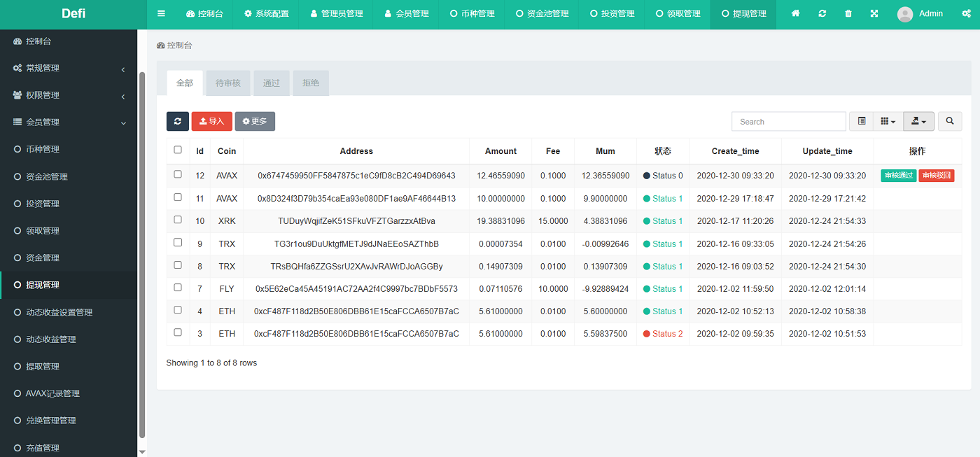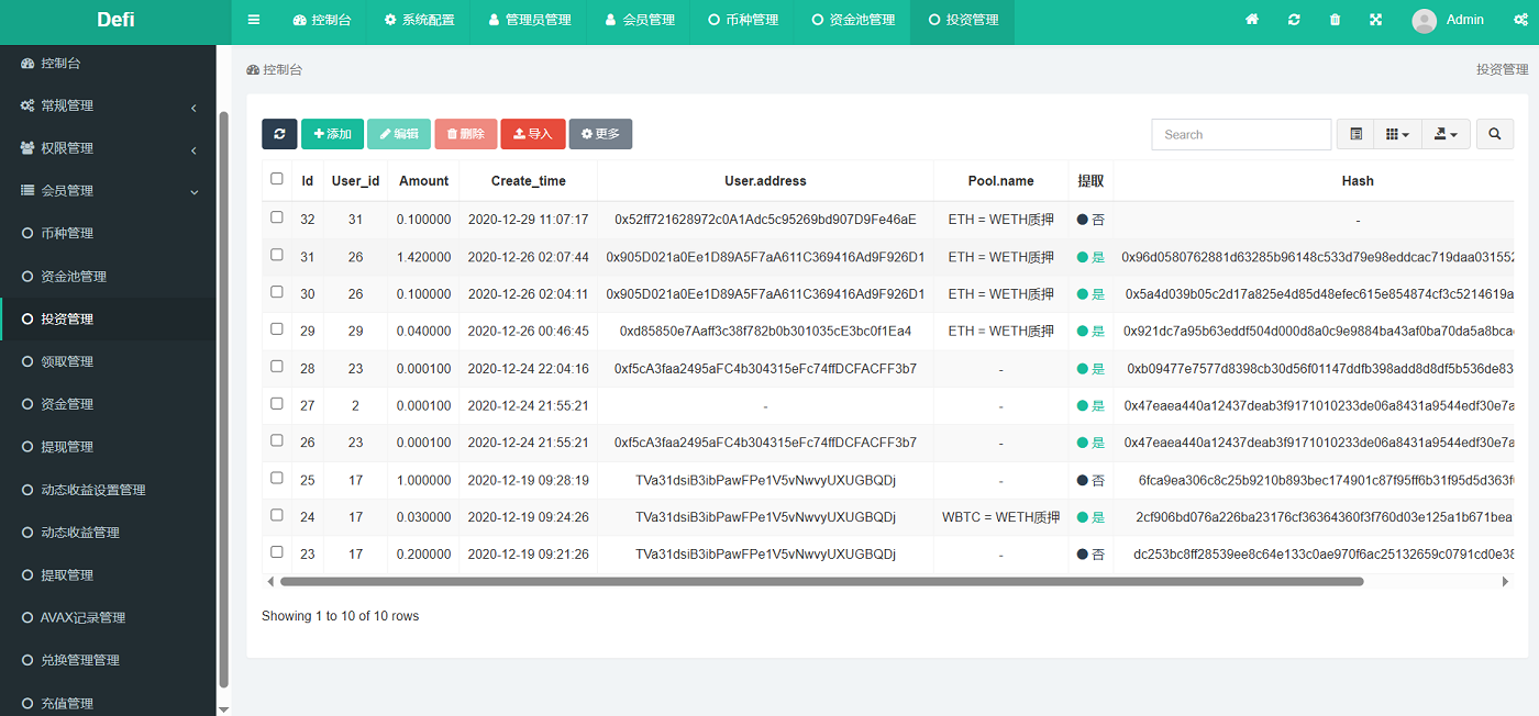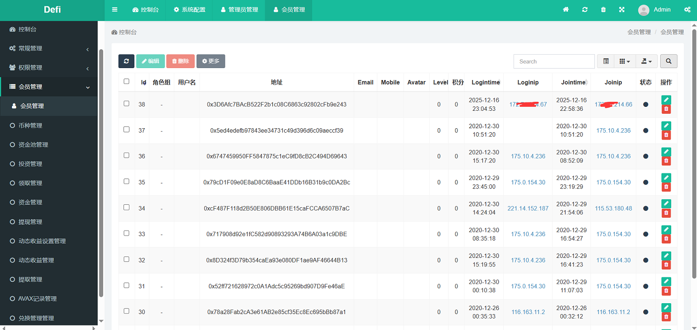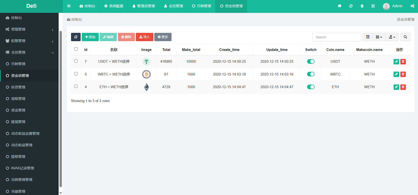 后台地址:你的域名/defi 后台账号:admin 密码:123456