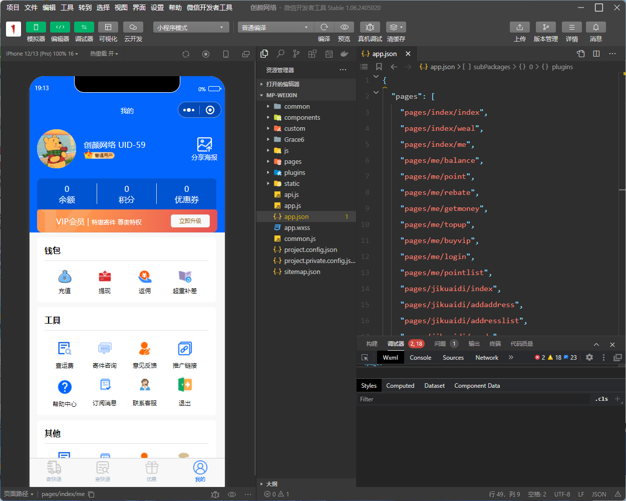 快递小程序,主要就是帮别人发快递,在原本的用户与快递之间,增加中间代理,用户在小程序下单,我们把用户需要发的快递聚集到一起,团购更优惠的价格,赚取其中一个差价!当订单量较大的时候,就有与各快递平台合作的价值,能拿到更优惠的价格!小程序还包含了完善的广告管理、会员和分销功能!支持官易达/云洋第三方平台接口接口!搭建说明:php7.2 mysql5.6·上传源码到网站根目录解压数据库连接修改:/application/database.php运行目录/,关闭防跨站,伪静态thinkphp导入数据库文件申请ssl,强制https后台/admin admin 123456设置->基础设置->站点设置:修改站点网站域名设置->小程序配置->小程序参数配置:修改小程序的信息小程序打包:·/manifest.json中重新获取appid,源码视图中修改小程序appid·/api.js中修改域名地址·/pages.json 285行修改appid需要正式微信小程序账号,在微信公众平台小程序后台中添加对应的插件(物流服务查询组件);否则进不去前台!物流插件安装地址:https://mp.weixin.qq.com/wxopen/ … 2&token=&lang=zh_CN或在微信开发者工具中打开的小程序代码中,找到app.json,然后在该文件中删除如下插件引用的代码: