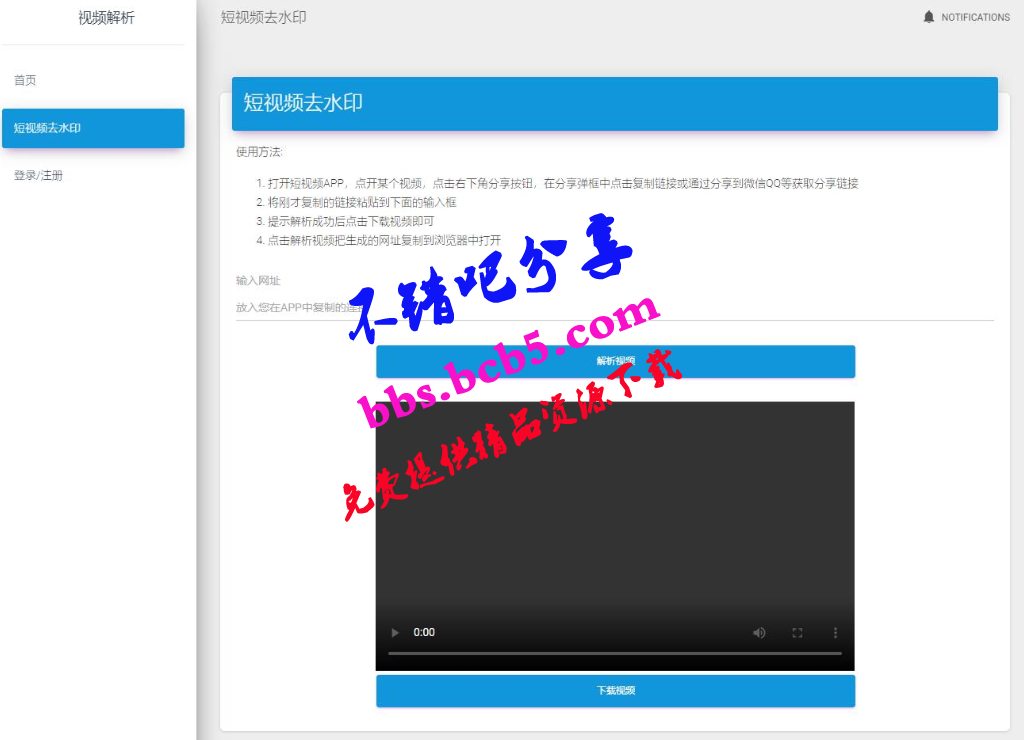 耘艺源码网 » 快手 抖音短视频去水印解析平台源码