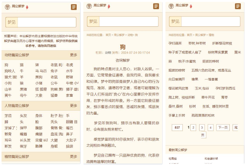 耘艺源码网 » 某站价值200的仿《周公解梦》源码 梦境解释查询大全网站模板