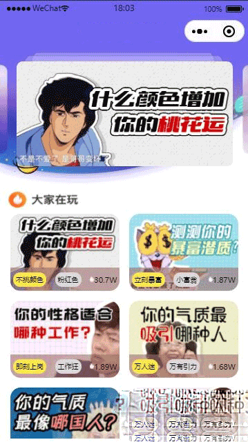 耘艺源码网 » 全新UI趣味心理测评微信小程序源码 自带流量主,免服务器即可搭建
