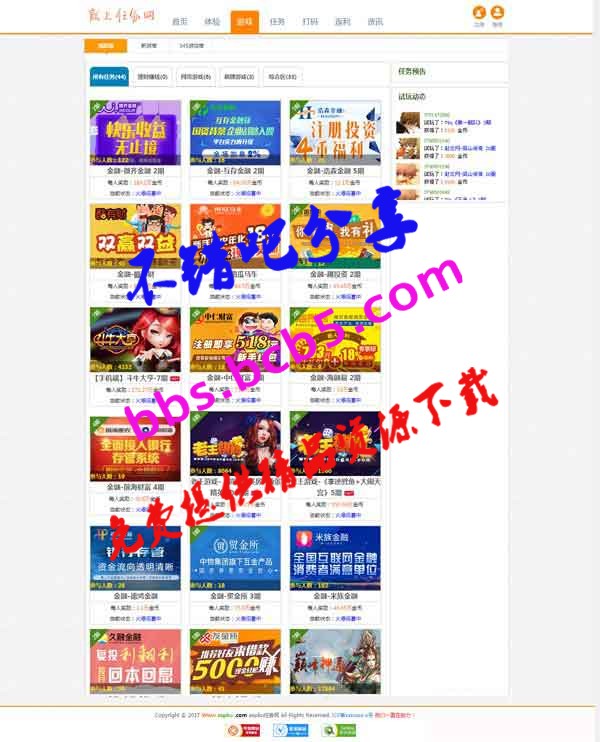 THINKPHP仿我爱广告任务网|任务网站源码下载是一款基于PHP+MYSQL开发制作的在线广告打码任务网站源码,底层内核为THINKPHP,经不错吧调试大体完整!有需要的朋友可下载尝试下!安装环境:php5.3以上 + mysql5.6安装方法:1、导入根目录下的数据库文件。2、打开Conf/config.php,修改数据库配置文件。3、保存,访问域名正常显示即安装成功。4、登录后台地址:http://你的域名/Admin.php aspku特别提示: 1、正式上线后需要关闭提示模式以开启缓存提高效率,打开index.php admin.php 关闭调试模式 define('APP_DEBUG', false); 2、后台修改系统配置后,需要清除缓存后才会生效 3、后台清除无效的话,可以删除 前台缓存Home\Runtime文件夹 后台缓存Admin\Runtime 4、接口文件都在 Home\Lib\Action 文件夹里面,先修改这个文件里面的 key 有的接口需要填写联盟合作ID,其中Wml是控制器,api是方法。注意大小写,Liunx系统严格区分大小写!