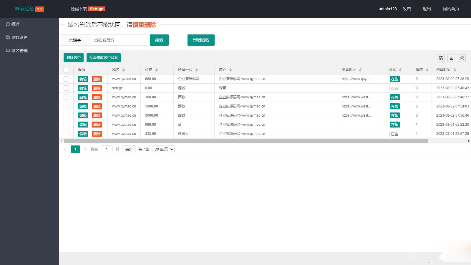 耘艺源码网 » 小票风格域名出售页面 带后台