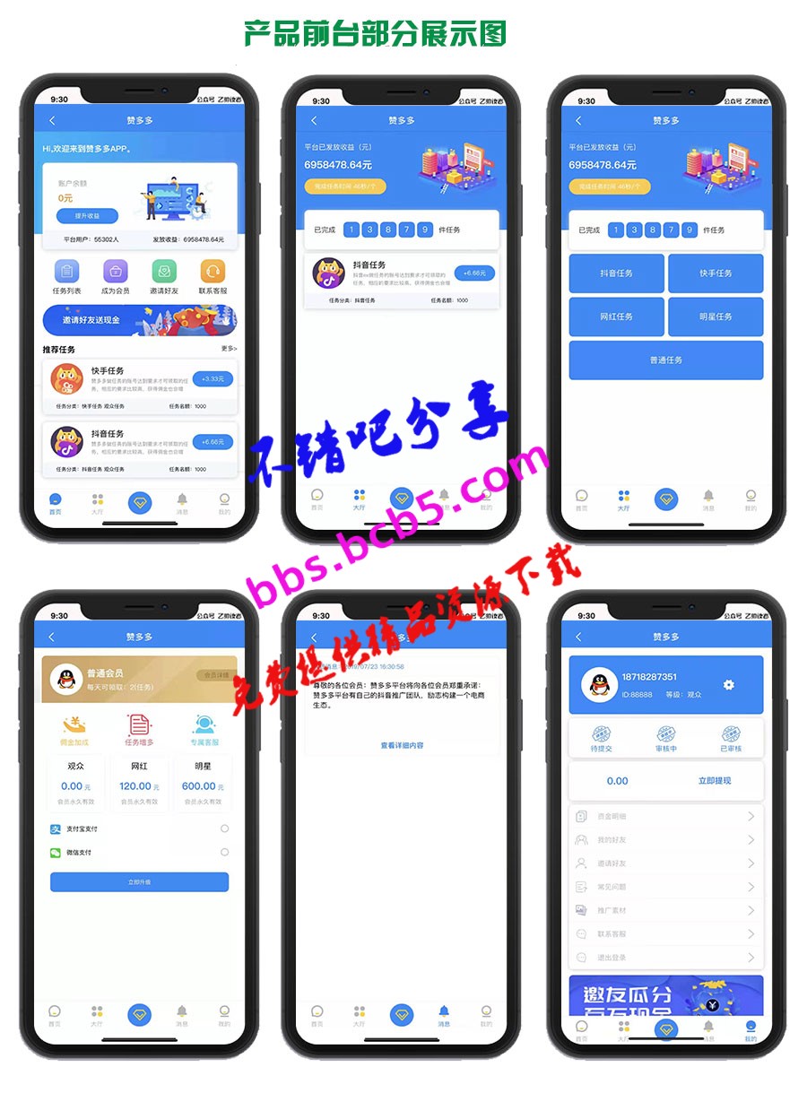 新UI界面Thinkphp霸屏天下微信抖音快手关注点赞任务平台源码 微信朋友圈自动挂机赚钱源码完整版,可打包手机app,外面卖几千块的源码,全部开源抖音点赞、关注赚钱平台,帮助短视频网红们提高人气,后台发布关注点赞任务,然后会员接单,完成有佣金,不同级别的会员每天接的数量不一样,带三级分佣推广系统首页任务接单,主要分为抖音和快手任务关注点赞,用户可以领取符合要求的任务,复制任务打开app关注和点赞,截图提交,后台审核通过后即可领取佣金,根据不同的等级每天领取的任务个数和单价都不一样,后台设置,还可以通过海报推广好友,获取推广的返佣,同时还可以领取推广下线的任务返利。运行环境:宝塔环境+php5.6+apache2.4+mysql5.6内附安装教程