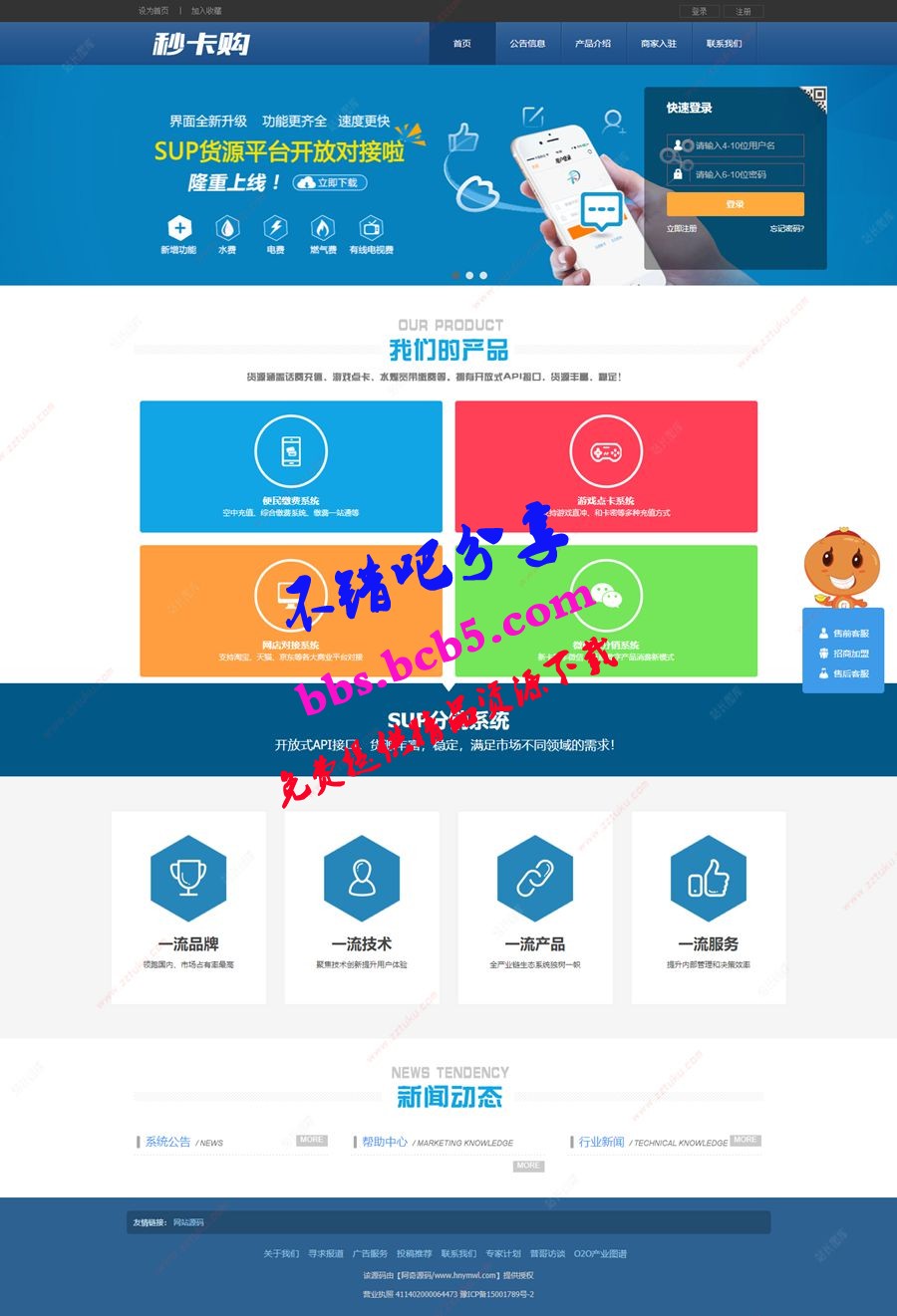 耘艺源码网 » 运营级别卡盟系统源码支持API站对接站 带有SUP+商户+支持秒搭建主站