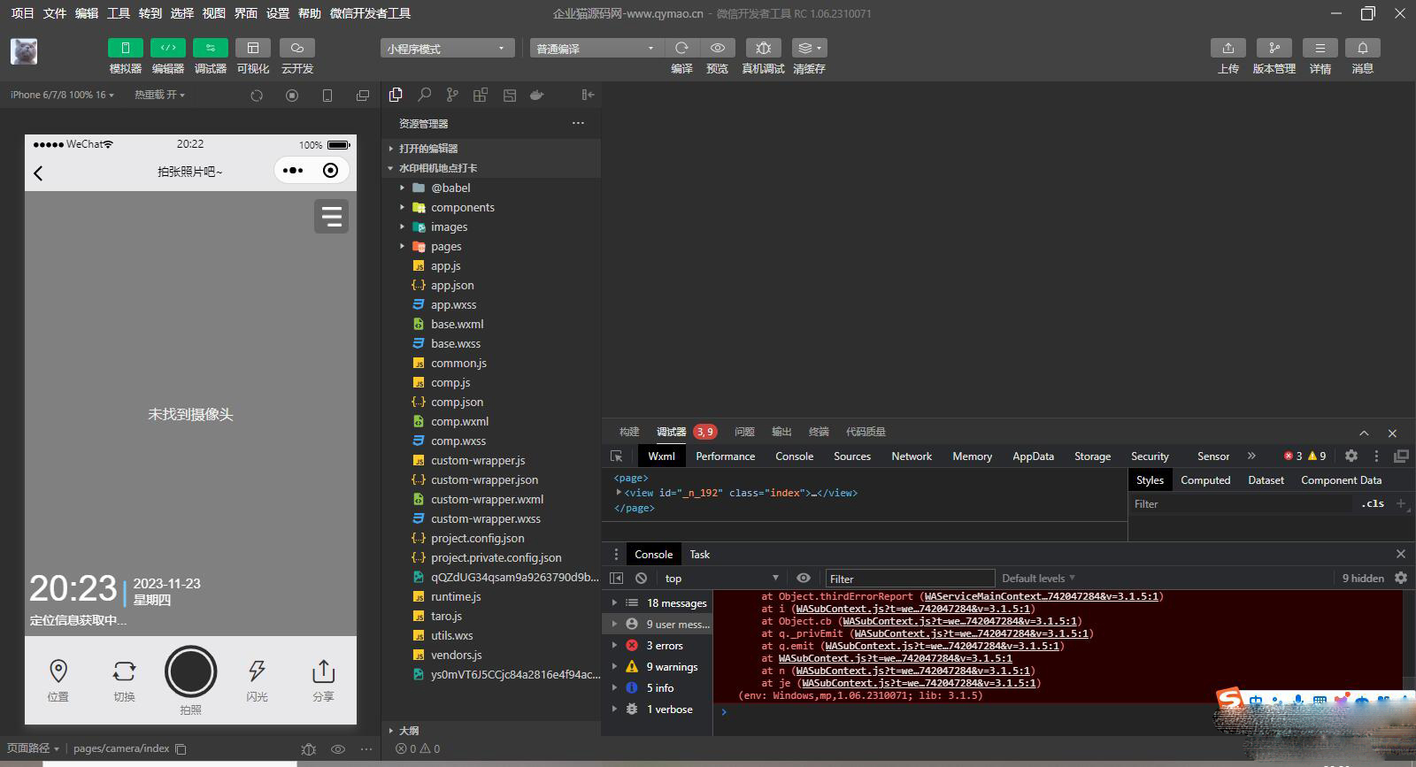 水印相机前端源码,该程序无需后端支持,只需直接导入前端即可使用,未添加流量主功能,如有需要可自行开通并添加。