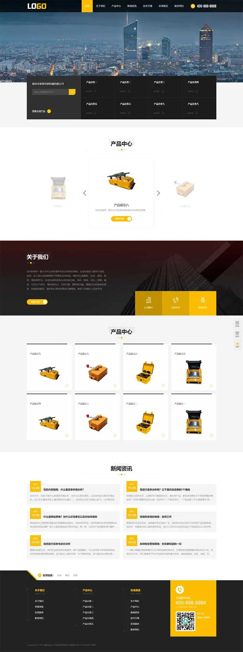 该模板属于包装机、产品展示、自动化设备类都可使用这款模板使用范围极广,不仅仅局限于一类型的企业,你只需要把图片和产品内容换成你的,颜色都可以修改,改完让你耳目一新的感觉!适应大部分显示器分辨率尺寸哦。模板整体以多种颜色为主色调,适合做各种类型的网站。同一个后台管理三网合一简单方便模板亮点:1:手工书写DIV+CSS、代码精简无冗余。2:效果相当的炫酷,相当简洁大气高端,模板简单,全部已数据调用,只需后台修改栏目名称即可3:SEO框架布局,栏目及文章页均可独立设置标题/关键词/描述。4:后台直接修改LOGO、联系方式、传真、邮箱、地址等,修改更加方便。5:电脑手机版同一个后台,数据即时同步,简单适用!附带测试数据!6、详情请看演示站点;