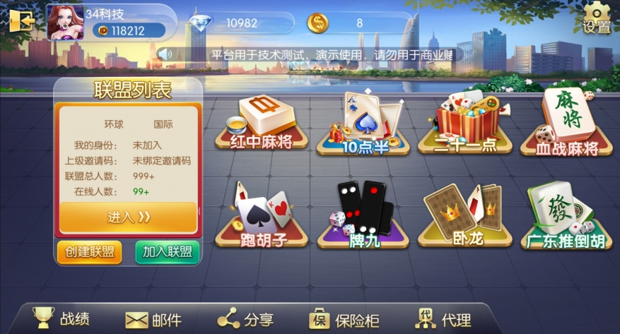 本套所含子游戏:牛牛、斗地主、炸J花、红中麻将、三公、跑得快、十三水、跑胡子、10点半、21点、血战麻将、牌九、卧龙、广东推倒胡。部份游戏中存在多种玩法(大众性的)本次增加了上饶窝龙非卧龙。