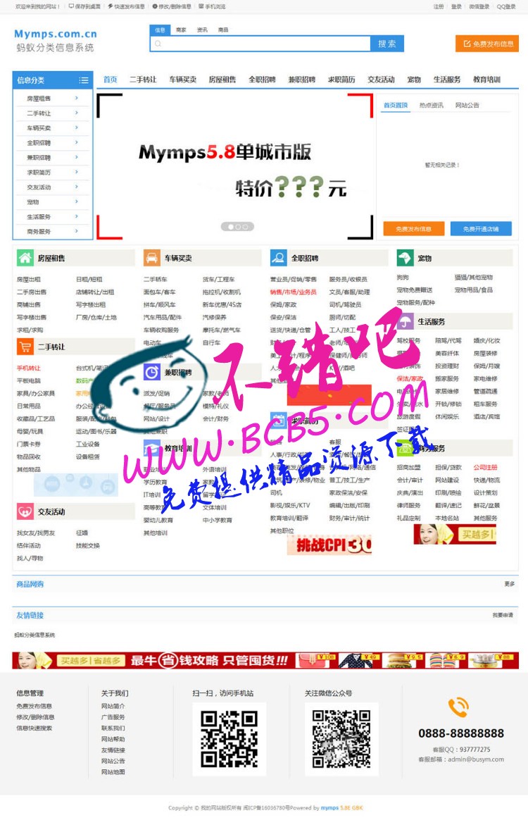 耘艺源码网 » 最新Mymps 5.8E企业版蚂蚁单城市分类信息门户开源无限制版源码|手机WAP+微信支付功能无限制完美运营