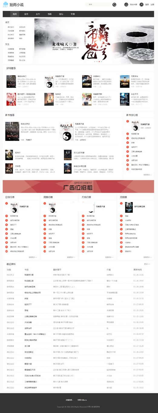 狂雨小说系统源码根据ThinkPHP5.1+MySQL开发
